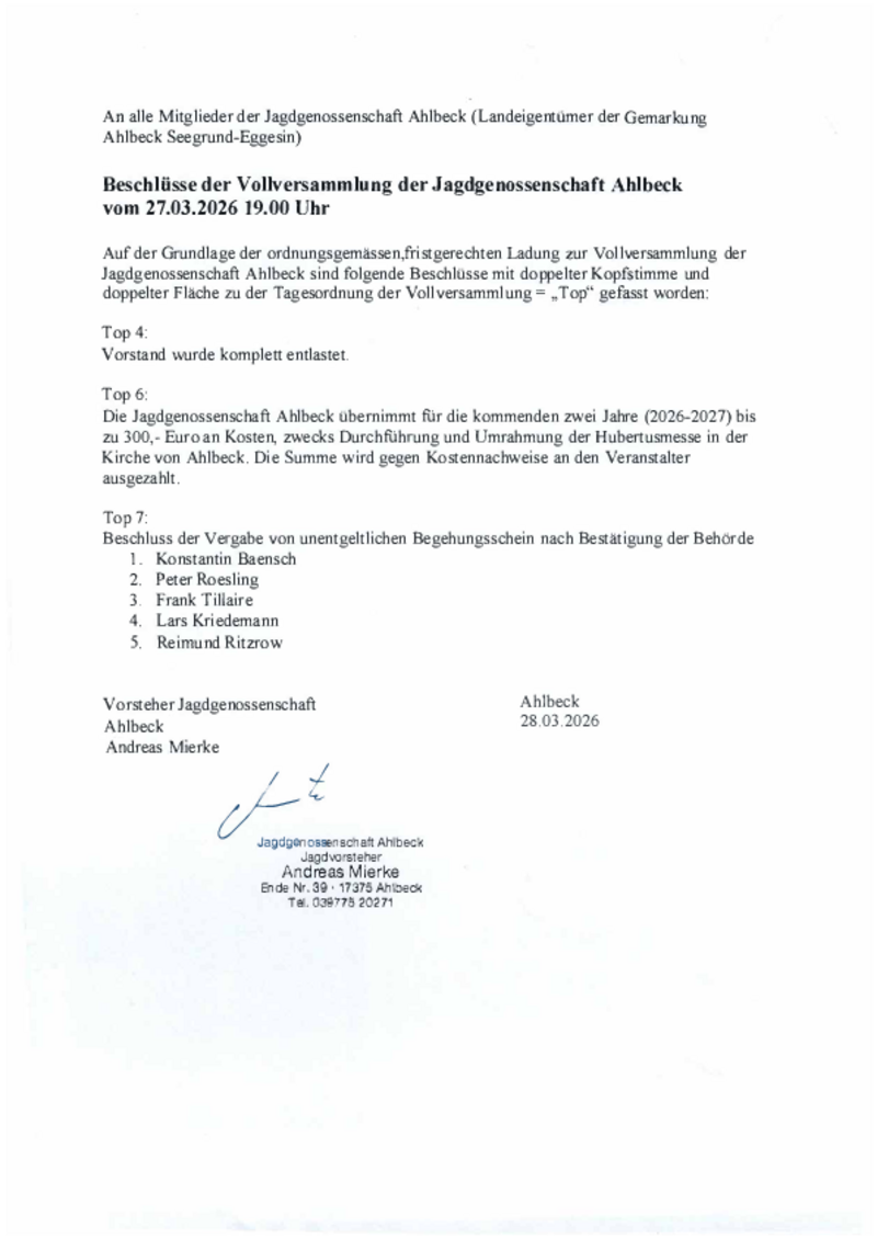 Der Eggesiner Präsident der Stadtvertretung Gerhard Tewis bietet den Einwohnern von Eggesin bedarfsgerechte Sprechzeiten an. Interessierte Bürgerinnen und Bürger werden gebeten, sich für eine individuelle Terminvereinbarung......lesen