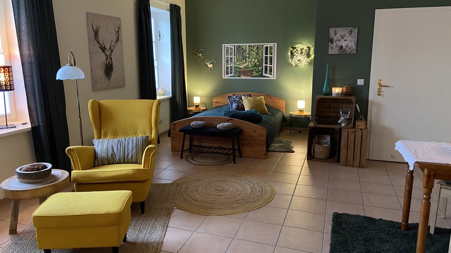 Abseits vom Touristenrummel zur Ruhe kommen. Klare Luft, Vogelgezwitscher und Sternenhimmel. Ein kleines Dorf in Vorpommern - ganz in der Nähe des Stettiner Haffs – unweit der Insel Usedom. Sie wohnen in einer liebevoll sanierten ehemaligen Scheune. Es erwartet Sie ein großer Wohn-/Schlafraum mit gemütlichem Doppelbett, Sofa, kleinem Schreibtisch & Kaminofen, dazu eine kleine Küche und ein geräumiges Duschbad. Zwei Fahrräder können dazu gebucht werden. Die Vermieter wohnen im Haupthaus an der Straße und beraten Sie gerne bei der Gestaltung Ihres Urlaubes. Sie haben ringsum Natur, können den großen Garten mitnutzen, Fahrrad fahren oder auf Uecker und Zarow mit dem Kajak paddeln. Bei Interesse besteht die Möglichkeit einen Keramikkurs zu buchen.