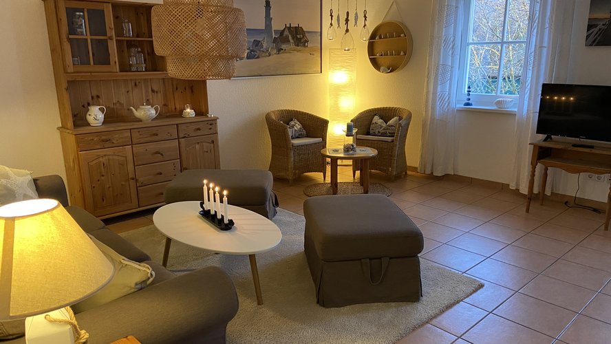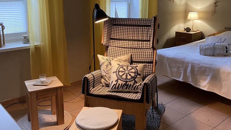 Die Wohnung ist voll ausgestattet mit Herd/Backofen, Kühlschrank mit kleinem Gefrierfach, Mikrowelle, Toaster, Wasserkocher, einer Pad-Kaffeemaschine und allen notwenigen Küchenutensilien, um sich gut selbst versorgen zu können. Natürlich verfügt der Wohnraum auch über ein TV. Der kleine Vorgarten mit den gemütlichen Sitzecken lädt zum Verweilen ein.